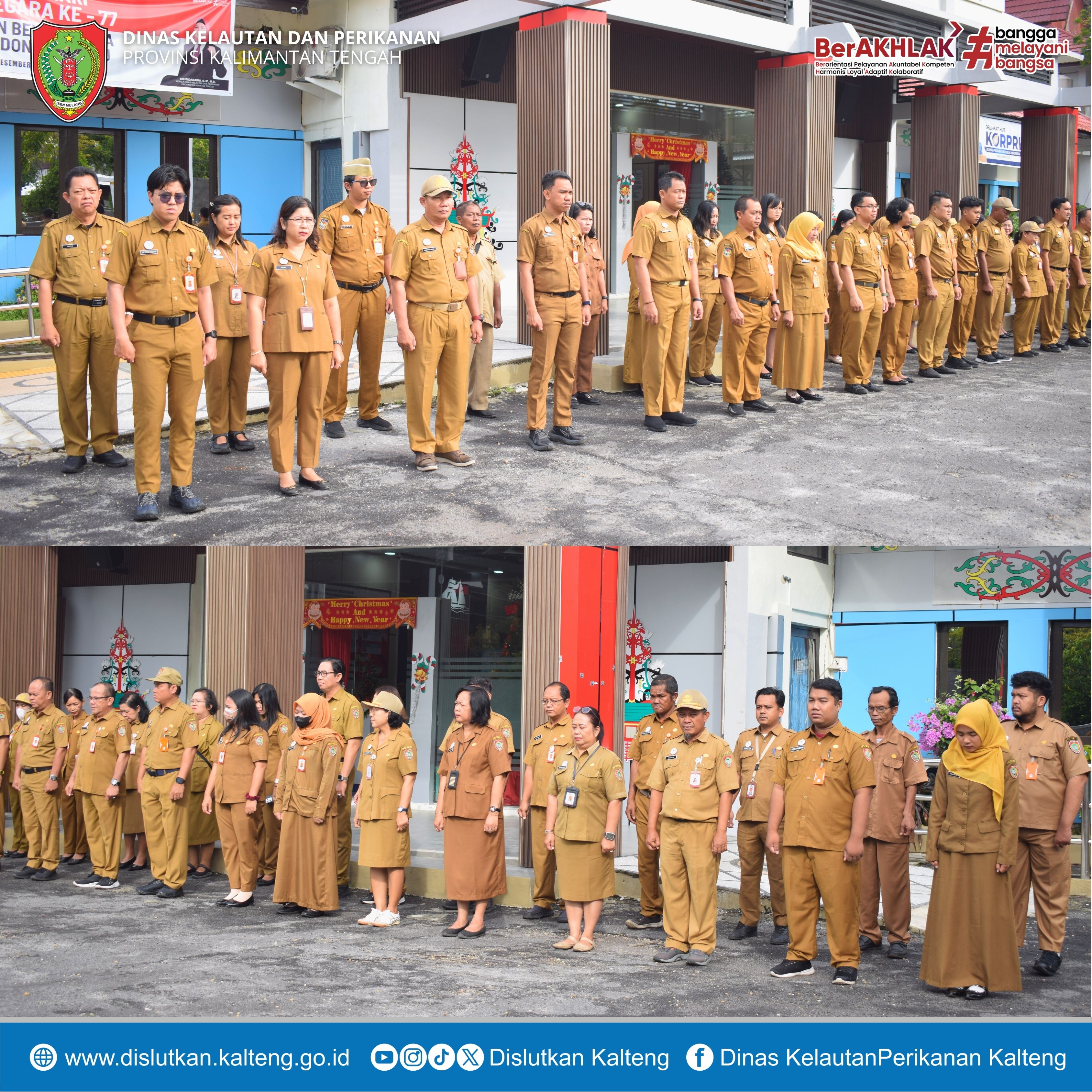 ASN Dislutkan Prov. Kalteng Melaksanakan Apel Senin Rutin di Halaman Kantor Dislutkan, Senin (29/12/2025)