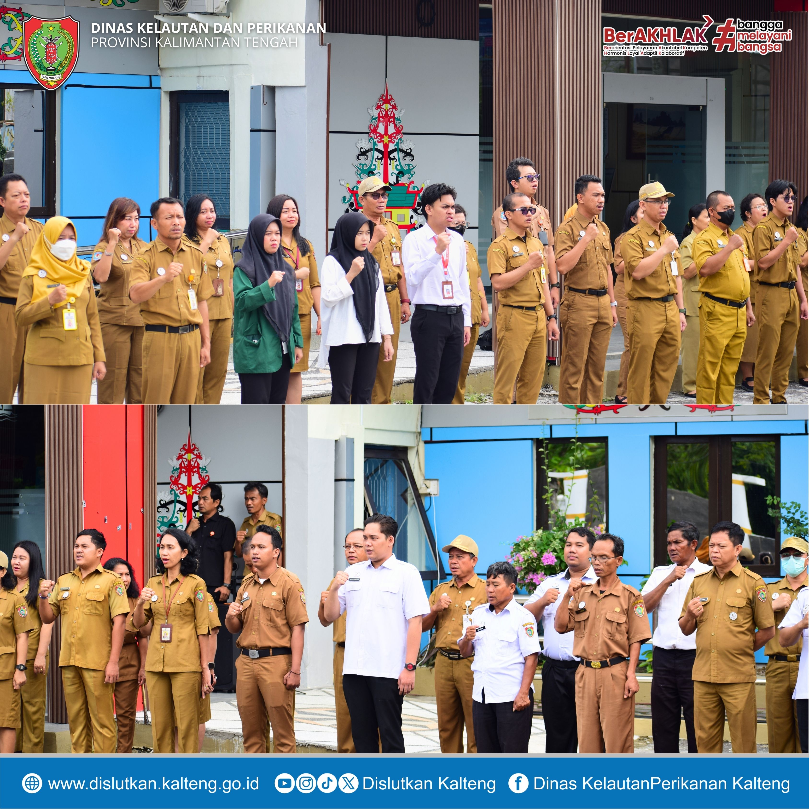 ASN Dislutkan Prov. Kalteng Melaksanakan Apel Senin Rutin di Halaman Kantor Dislutkan, Senin (29/09/2025)