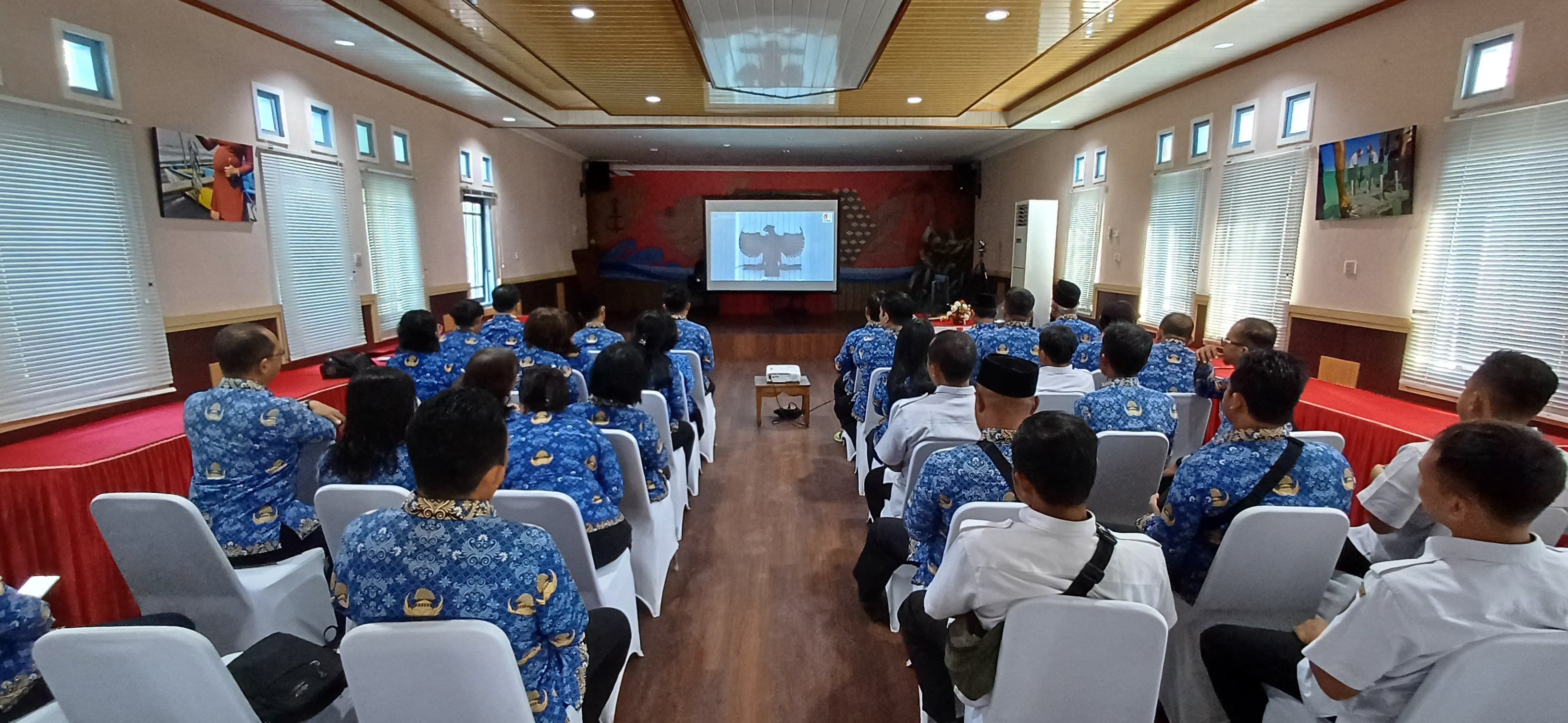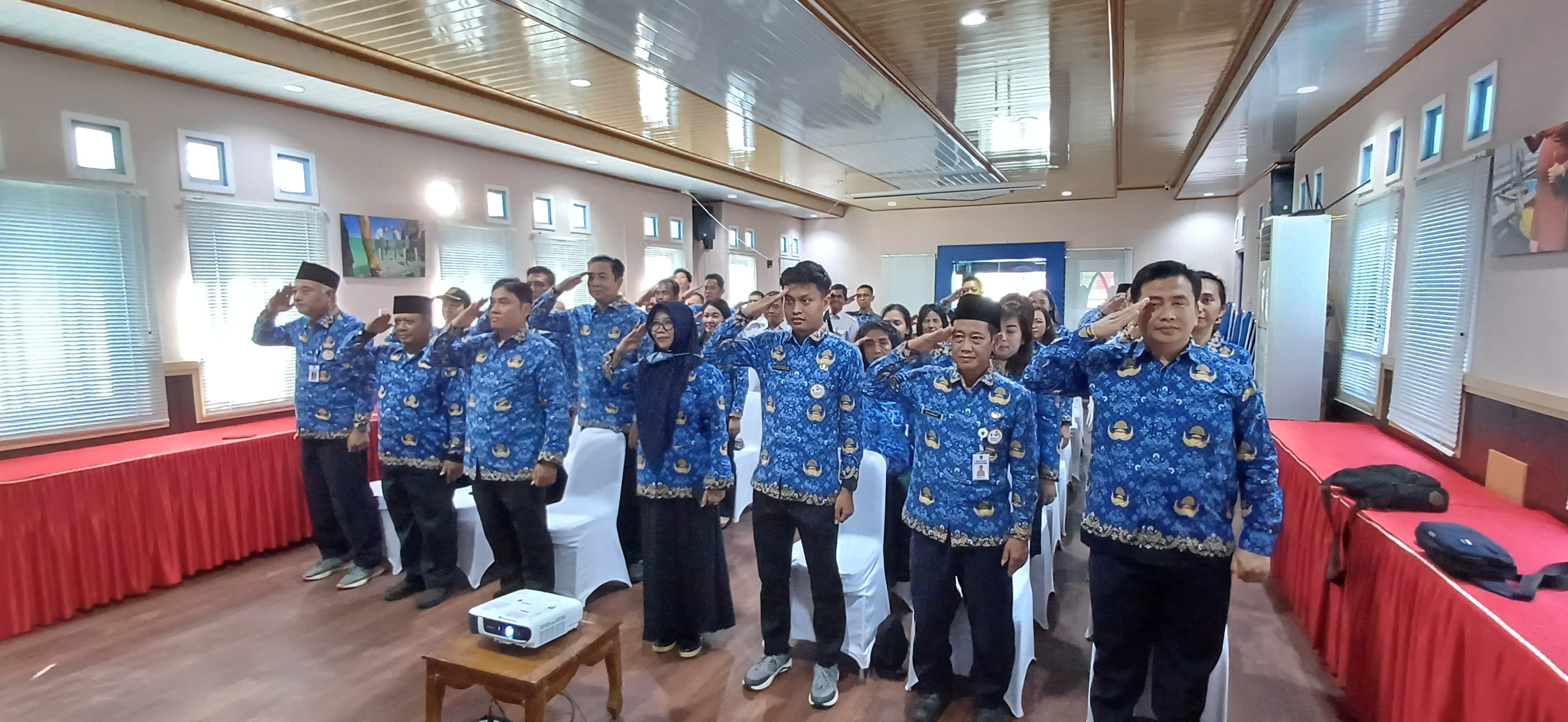 ASN Dislutkan Prov. Kalteng melaksanakan Upacara secara virtual dalam rangka Peringatan Hari Pahlawan 2024 di Aula Kantor Dinas Kelautan dan Perikanan Prov. Kalteng, Minggu (10/11/2024)