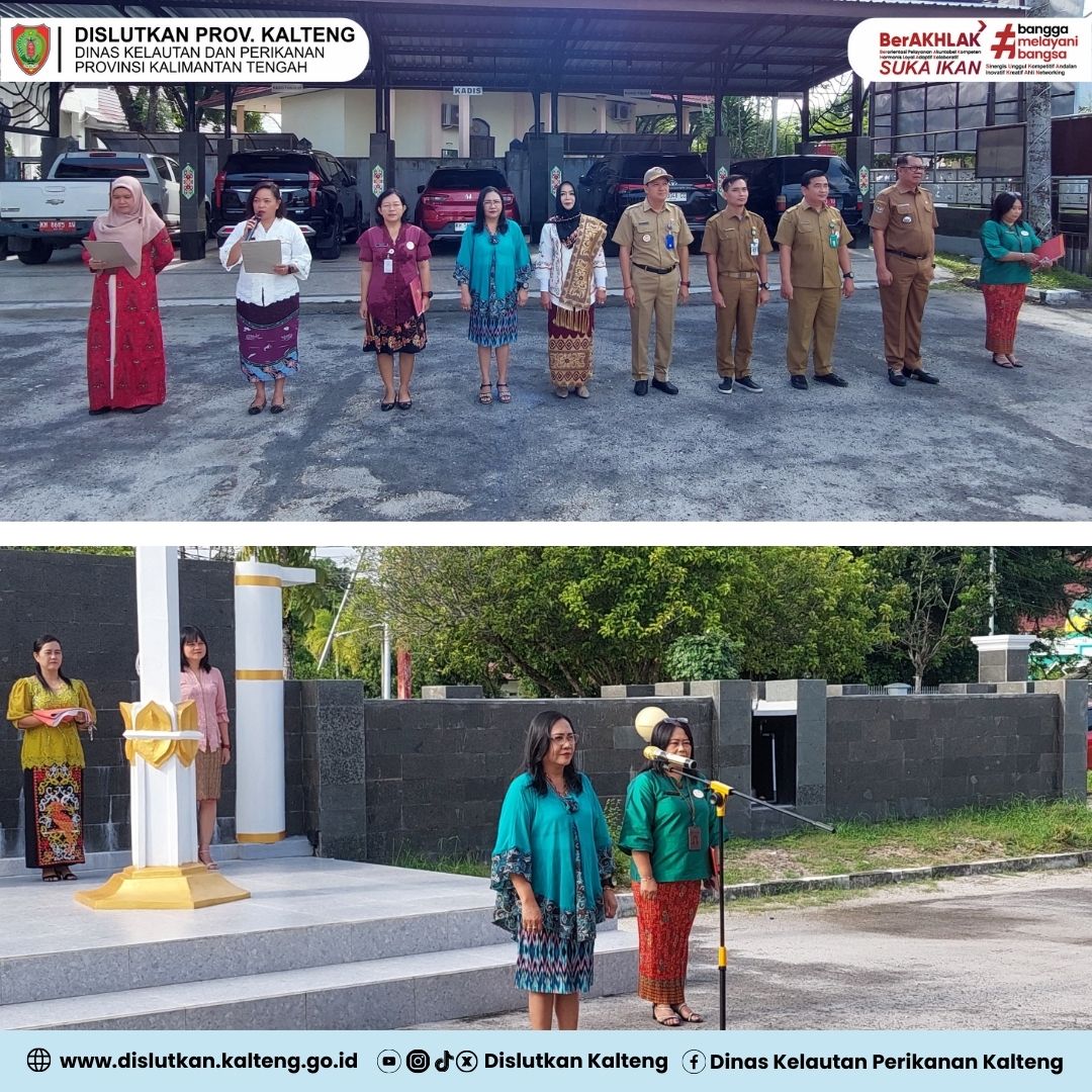 ASN Dislutkan Prov. Kalteng mengikuti Upacara Bendera di halaman kantor Dislutkan Prov. Kalteng, Senin (21/04/2025). Pada kesempatan ini, seluruh pegawai perempuan menggunakan pakaian nasional Kebaya dalam rangka memperingati Hari Kartini.