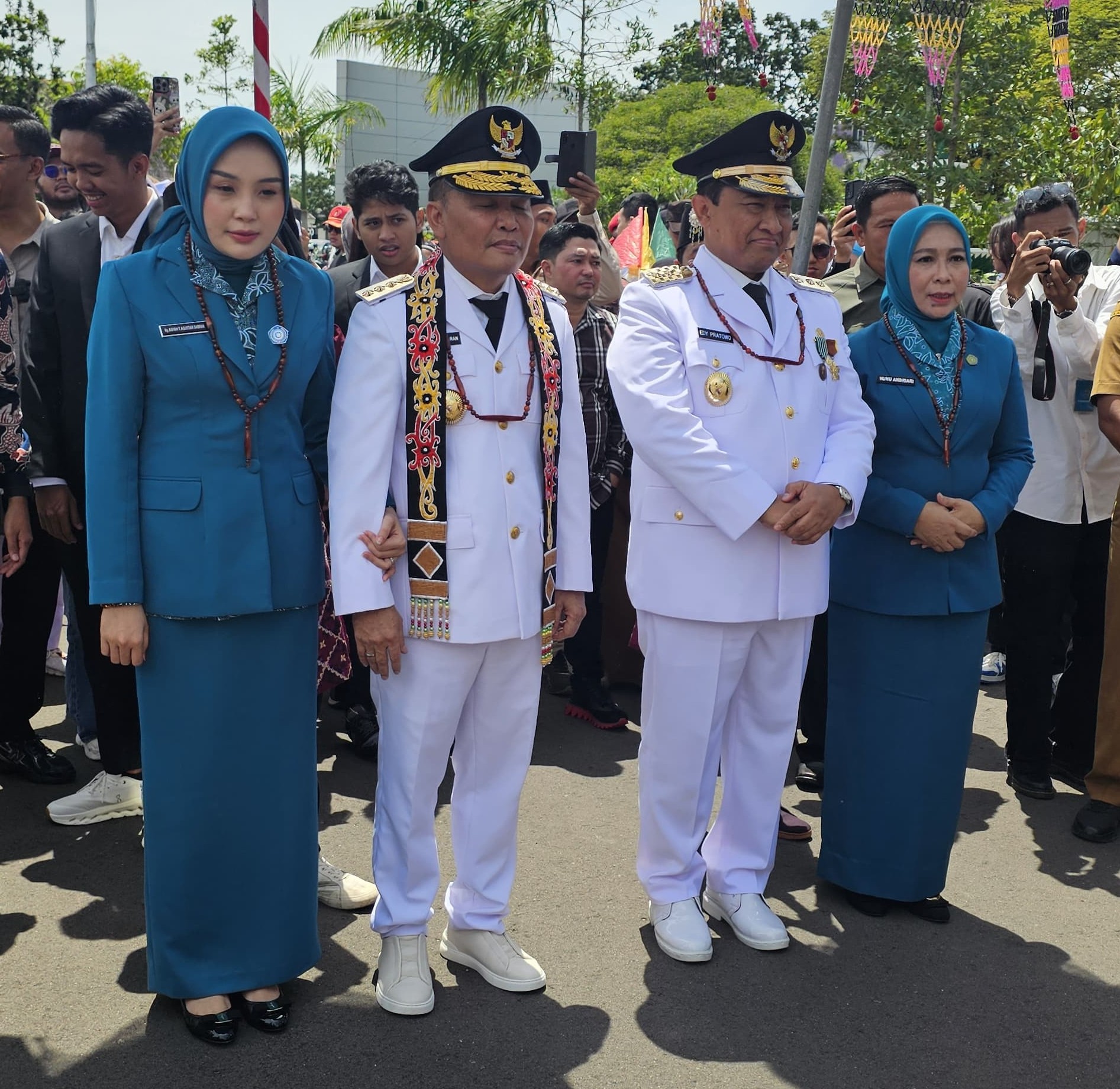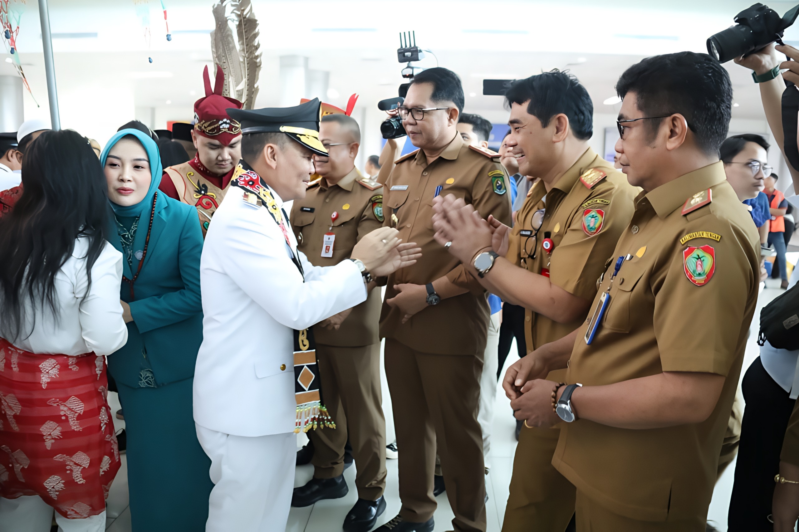 DislutkanKalteng - Palangka Raya - Aparatur Sipil Negara (ASN) Dinas Kelautan dan Perikanan (Dislutkan) Prov. Kalteng, baik Pegawai Negeri Sipil maupun Tenaga Kontrak, menyambut kedatangan Gubernur Kalteng H. Agustiar Sabran dan Wakil Gubernur Kalteng H. Edy Pratowo di halaman Istana Isen Mulang Palangka Raya, Selasa (4/3/2025).
