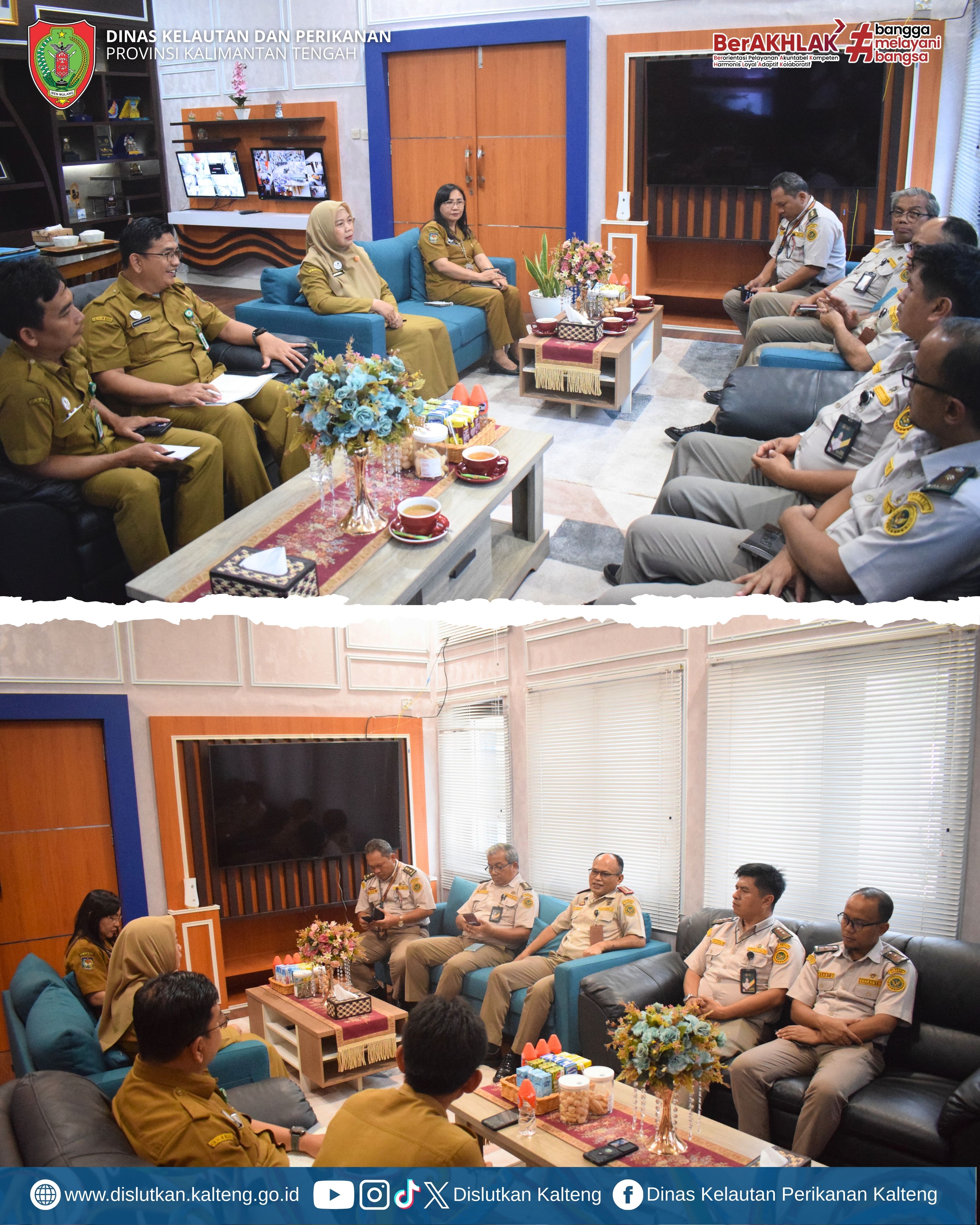 Kepala Dislutkan Prov. Kalteng Sri Widanarni, S.I.P, M.Si Beserta Jajaran Melaksanakan Audiensi Bersama Balai Karantina Hewan, Ikan dan Tumbuhan Kalteng bertempat di Ruang Kerja Kepala Dislutkan, Senin (26/01/2026).
