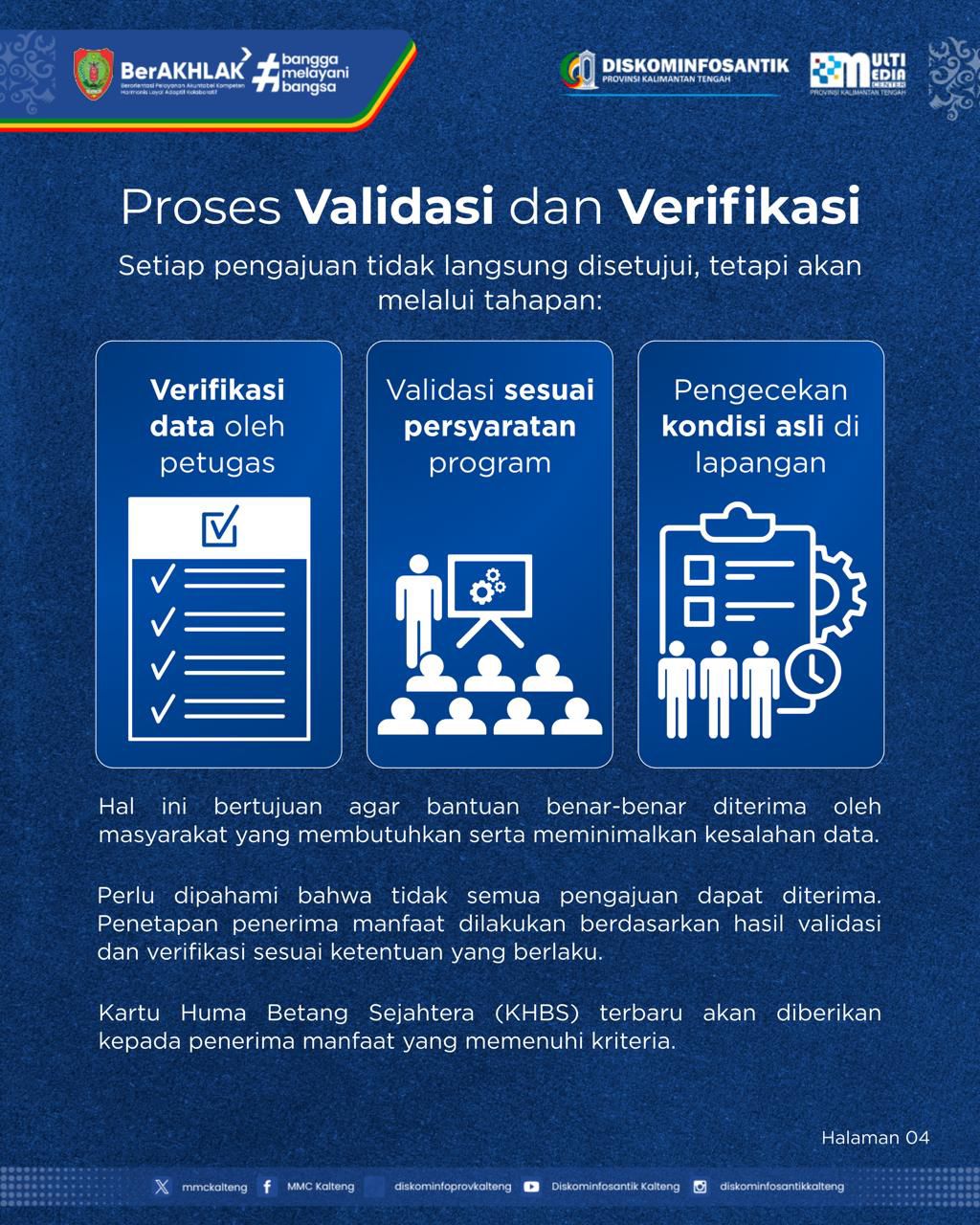 Setiap pengajuan akan melalui proses verifikasi dan validasi oleh petugas hingga pengecekan kondisi di lapangan, agar bantuan diterima oleh masyarakat yang benar-benar membutuhkan.