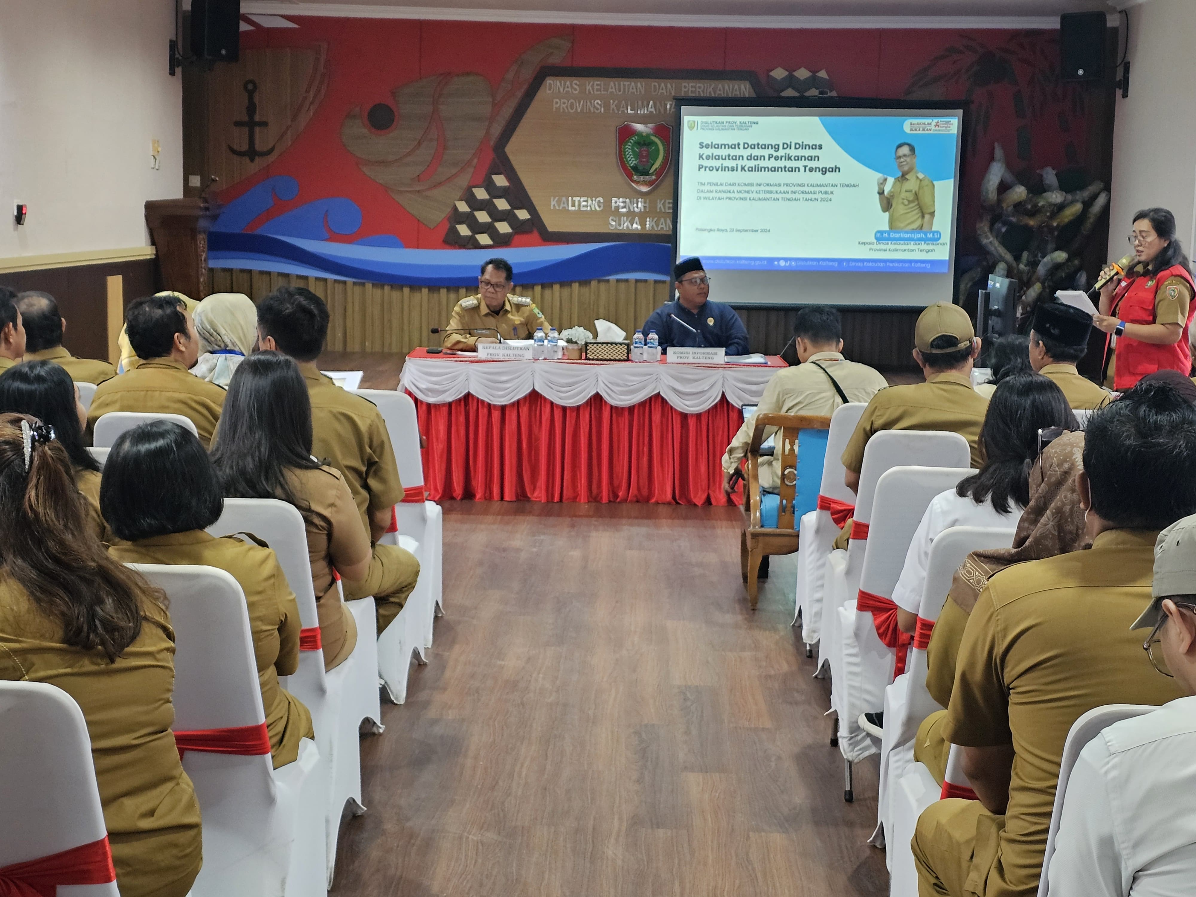 DislutkanKalteng – Palangka Raya – Dinas Kelautan dan Perikanan (Dislutkan) Prov. Kalteng menerima kunjungan Tim Penilai dari Komisi Informasi (KI) Prov. Kalteng dalam rangka Visitasi Monev Keterbukaan Informasi Publik (KIP) di Wilayah Prov. Kalteng Tahun 2024, bertempat di Aula Dislutkan Prov. Kalteng, Senin (23/9/2024).