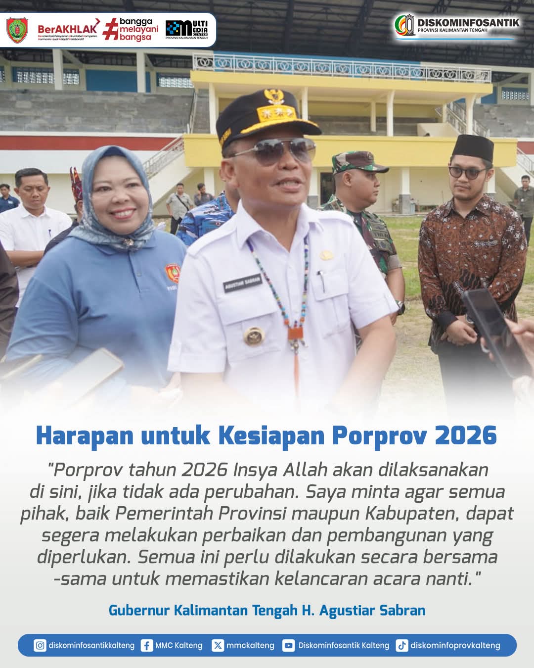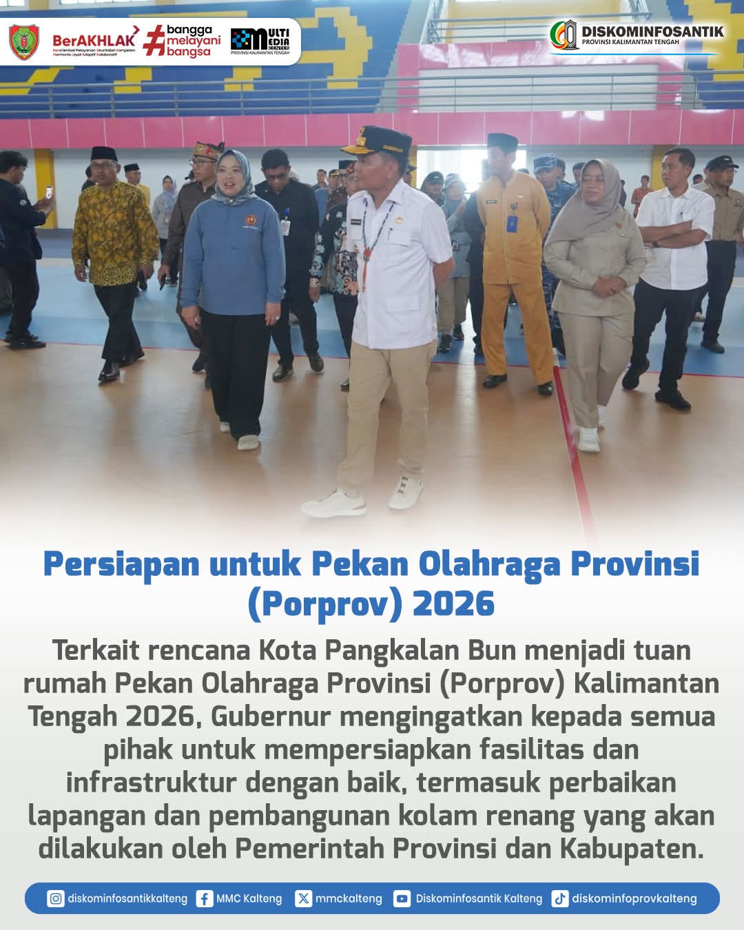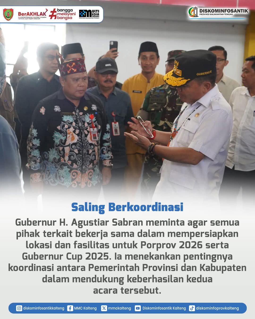 Gubernur Kalimantan Tengah H. Agustiar Sabran, melakukan peninjauan Gedung Sport Center Pangeran Ratu Alamsyah di Pangkalan Bun, Kotawaringin Barat, pada Kamis (5/6/2025). Gedung seluas 4800 m² ini telah diresmikan pada 10 Mei 2025 dan sudah siap digunakan untuk latihan dan pertandingan olahraga. Gubernur juga meninjau Stadion Sepak Bola Sampuraga Baru yang terletak bersebelahan, serta menekankan pentingnya persiapan matang untuk menyambut Pekan Olahraga Provinsi (Porprov) 2026.