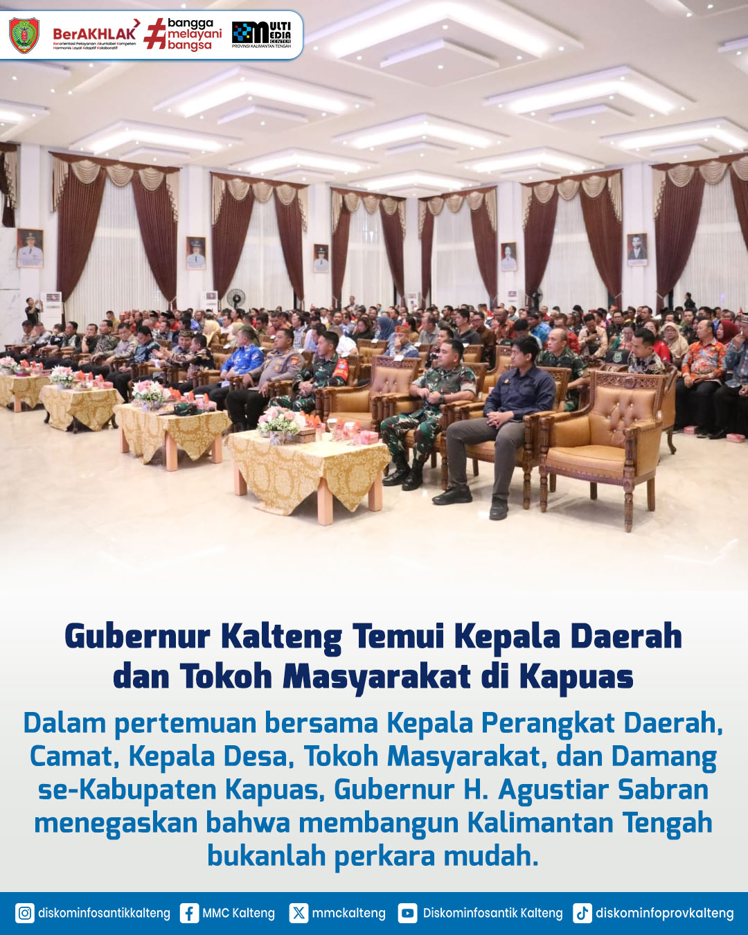 Membangun Provinsi Kalimantan Tengah membutuhkan tekad yang kuat dan kerja sama antara semua pihak. Dalam acara pertemuan di Hall Rumah Jabatan Bupati Kapuas, Selasa (6/5/2025), Gubernur Kalteng H Agustiar Sabran menekankan pentingnya pembangunan merata hingga ke pedalaman, dengan dukungan para Kepala Desa dan Damang sebagai garda terdepan. Beliau juga mengingatkan bahwa kebijakan pembangunan harus selaras dari pusat hingga ke desa untuk mencapai kesejahteraan masyarakat.