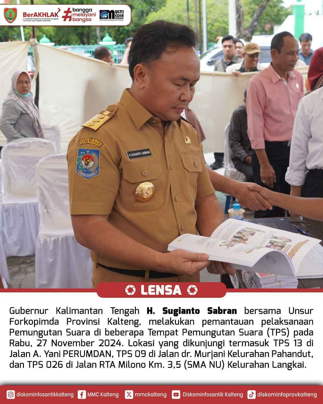 Gubernur Kalteng Pantau Pilkada, Serukan Demokrasi Damai dan Partisipasi Aktif