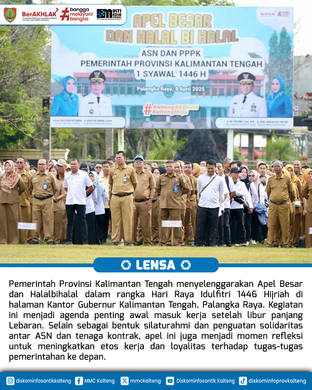 Gubernur Kalteng Tekankan Semangat dan Etos Kerja dalam Apel Besar dan Halalbihalal 1446 H