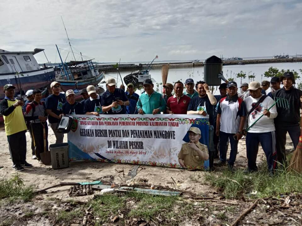 Kegiatan gerakan bersih pantai dan penanaman mangrove di desa Kubu kabupaten Kotawaringin Barat