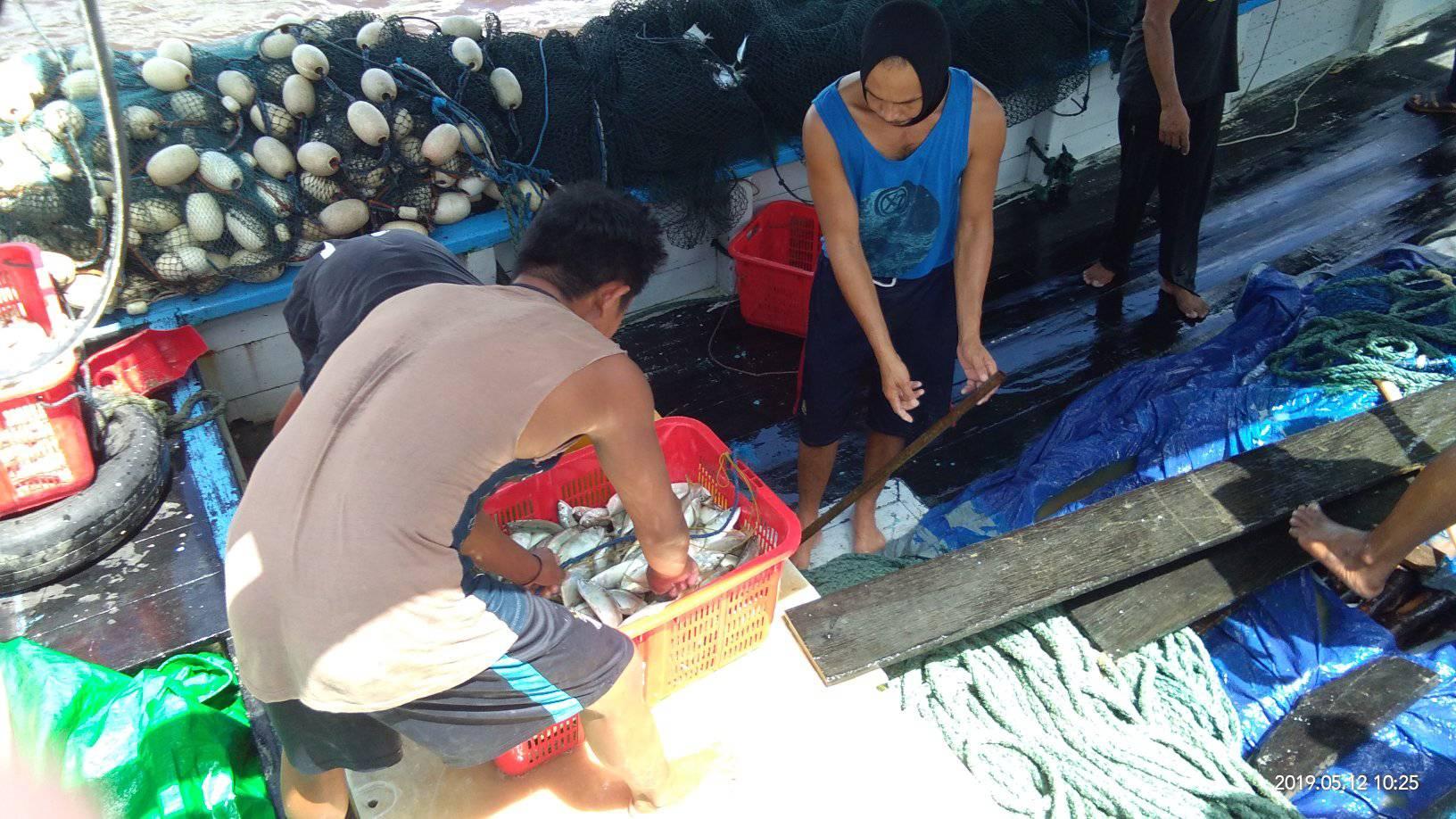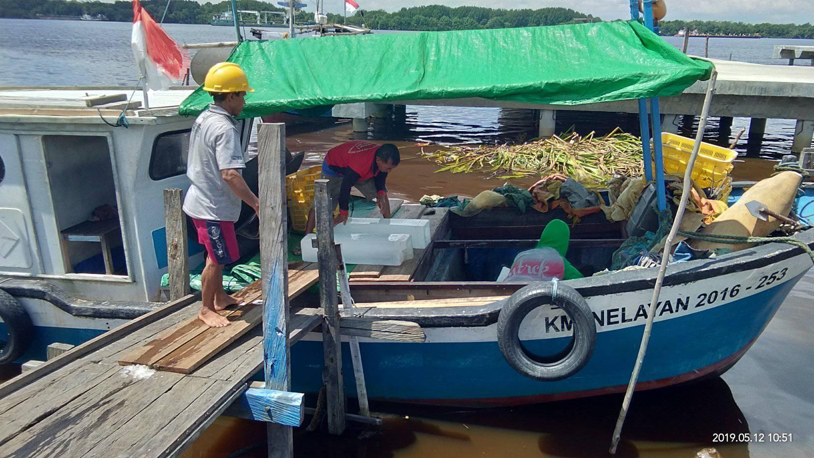 Kegiatan bongkar hasil tangkapan nelayan dan Pengisian perbekalan ES batu di UPT. Pelabuhan Perikanan Kumai di Kabupaten Kotawaringin Barat.