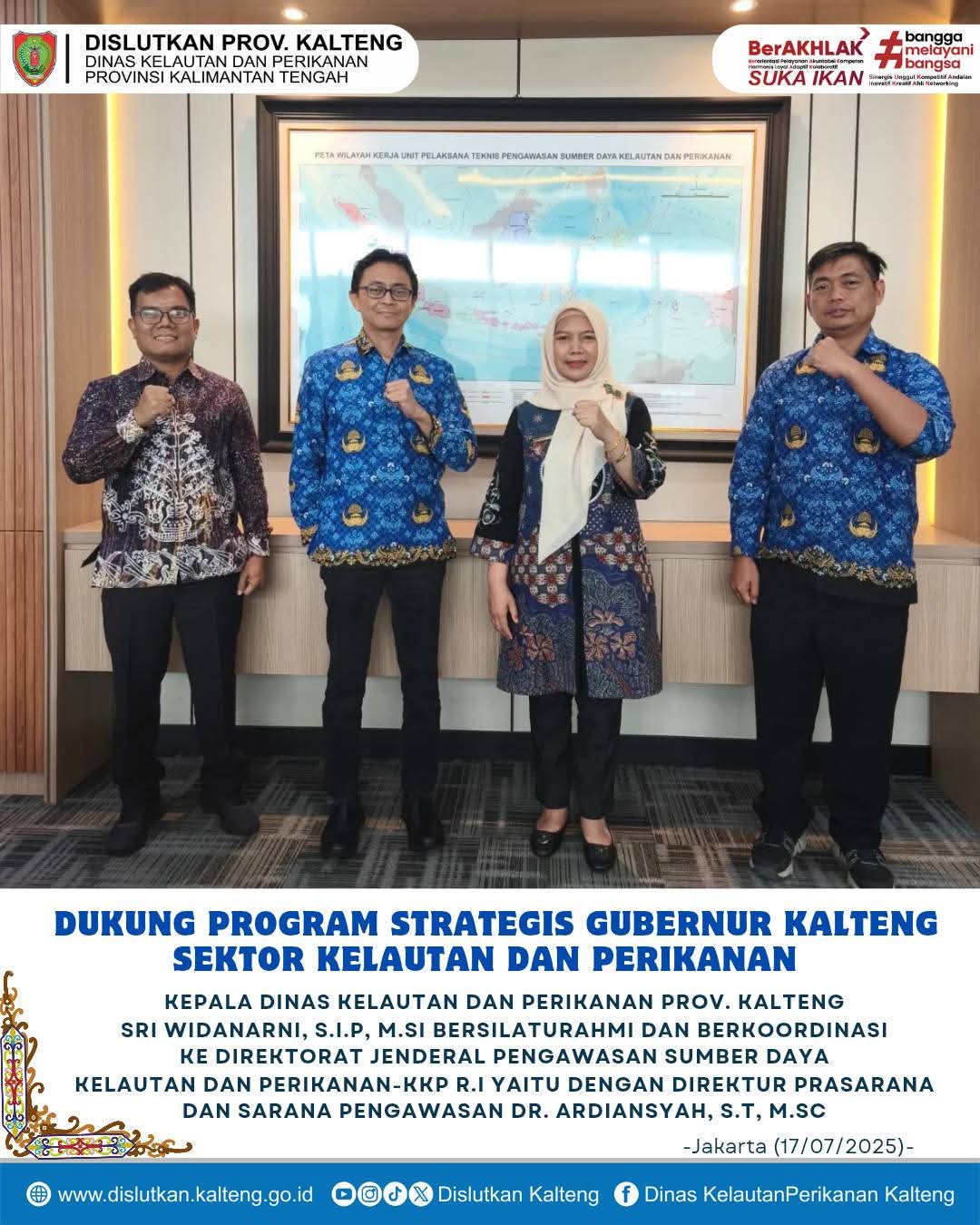 Kepala Dinas Kelautan dan Perikanan Prov. Kalteng Sri Widanarni, S.I.P, M.Si bersilahturahmi dan berkoordinasi dengan Kementerian Kelautan dan Perikanan RI, Jakarta 17 Juli 2025