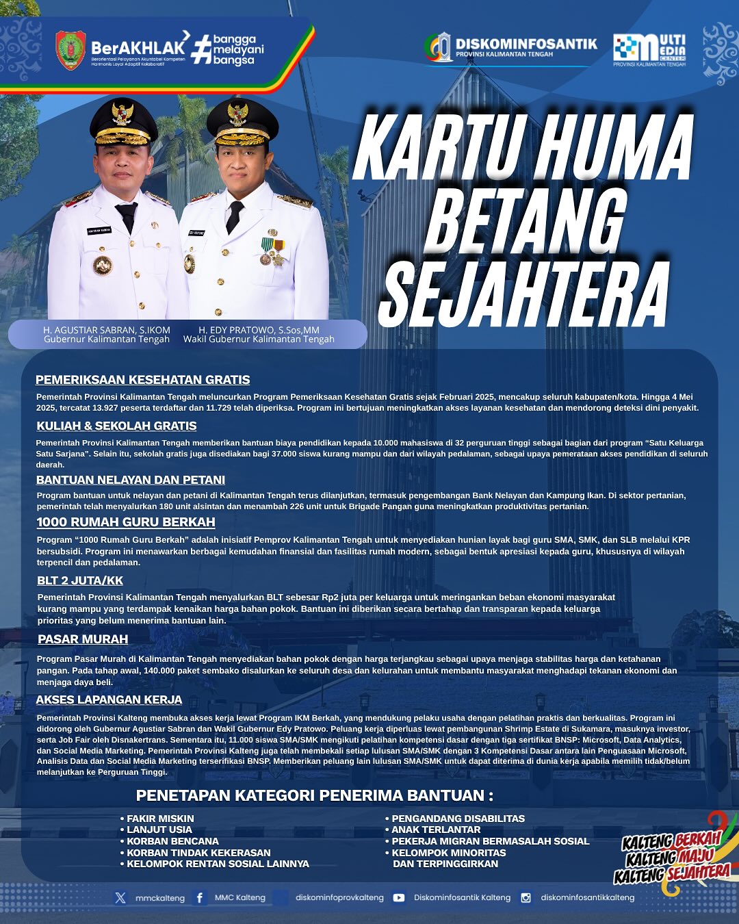 Pemerintah Provinsi Kalimantan Tengah terus mengambil peran aktif dalam meningkatkan taraf hidup masyarakat melalui program-program strategis. Salah satunya, peluncuran Kartu Huma Betang Sejahtera, bukti nyata keberpihakan dan kepedulian pemerintah terhadap masyarakat.