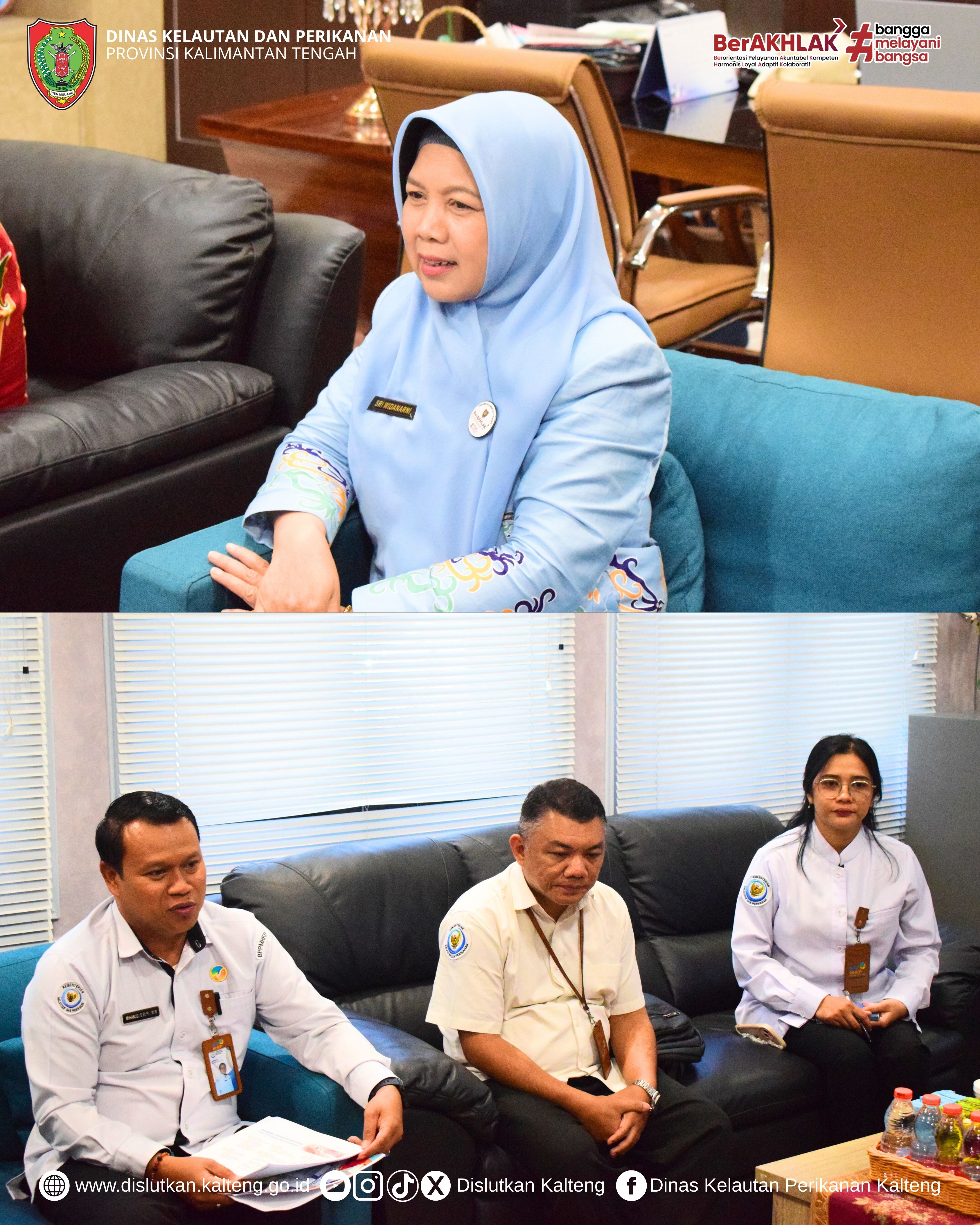 Kepala Dislutkan Prov. Kalteng Sri Widanarni, S.I.P., M.Si Menerima kunjungan Badan Pengendalian dan Pengawasan Mutu Hasil Kelautan dan Perikanan Kalimantan Tengah bertempat di Ruang Kerja Kepala Dislutkan Prov. Kalteng, Kamis (18/09/2025)