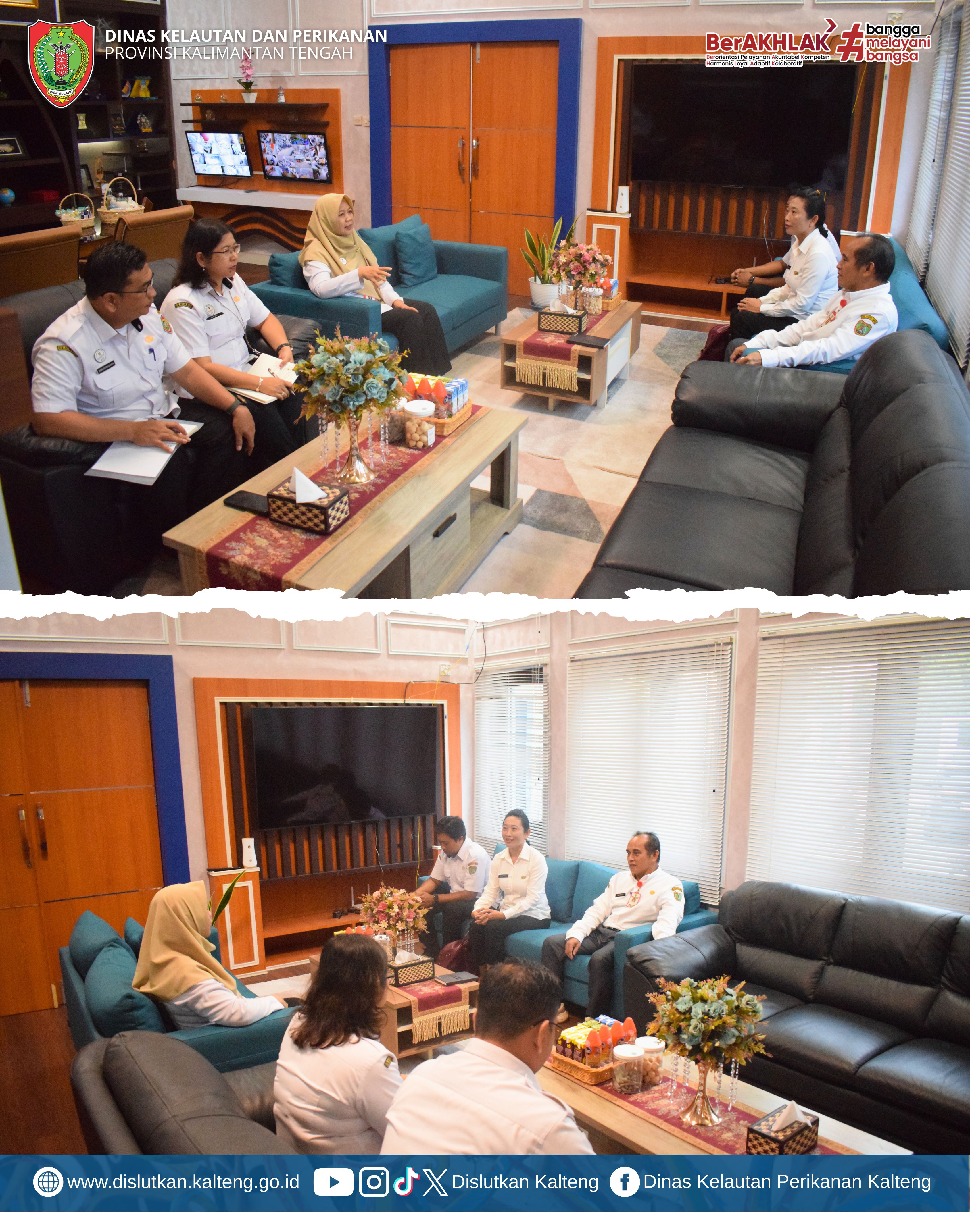 Kepala Dislutkan Prov. Kalteng Sri Widanarni, S.I.P, M.Si Menerima Kunjungan Kerja dari Kepala Dinas Perikanan Kabupaten Barito Timur Bertempat di Ruang Kerja Kepala Dislutkan, Rabu (22/04/2026).
