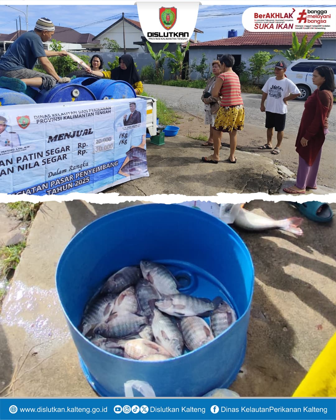 Dislutkan Prov. Kalteng menggelar kegiatan Pasar Penyeimbang Keliling dalam membantu masyarakat menghadapi inflasi dengan komoditas ikan patin dan ikan nila di Jl. Menteng X Palangka Raya, Rabu (16/04/2025)