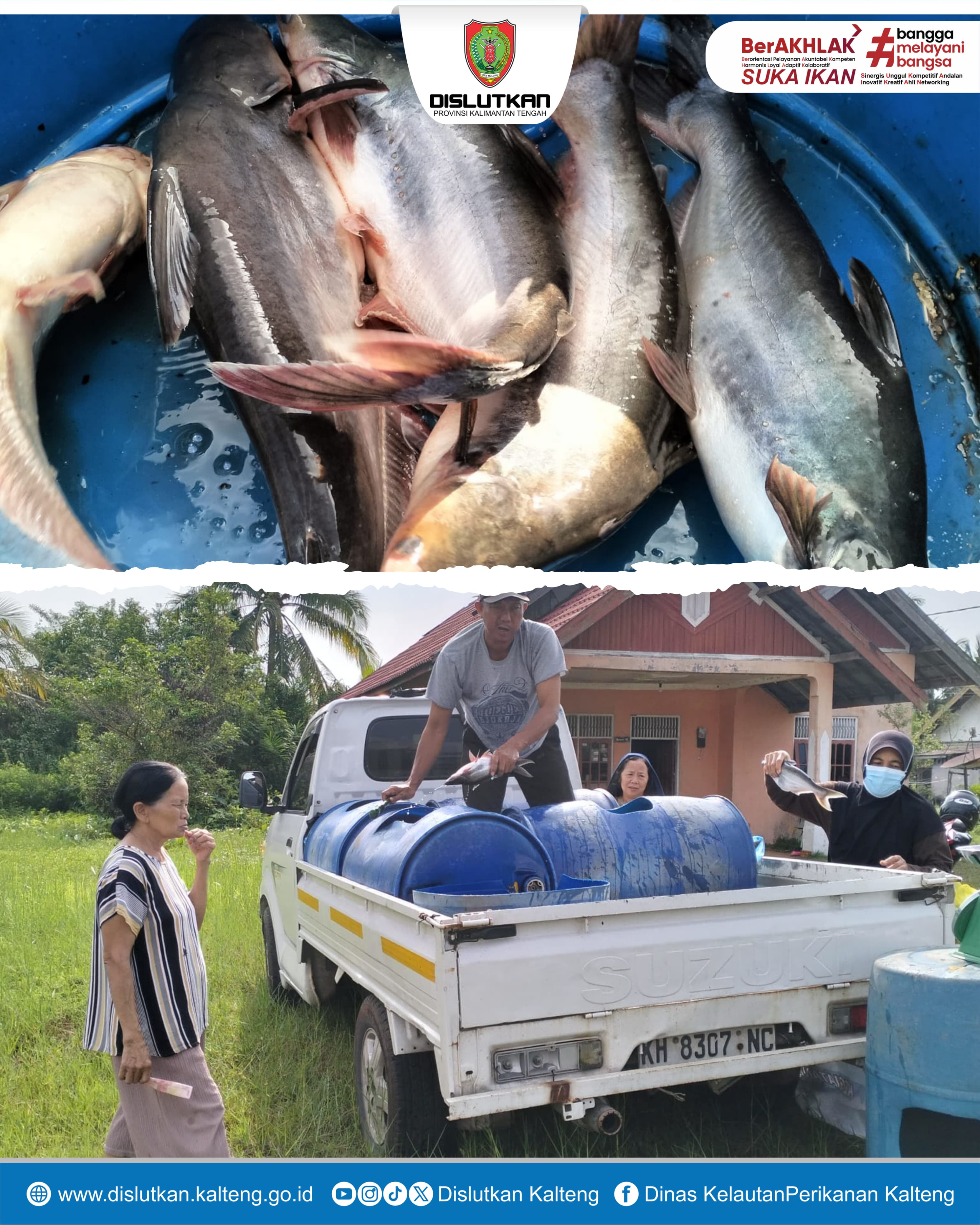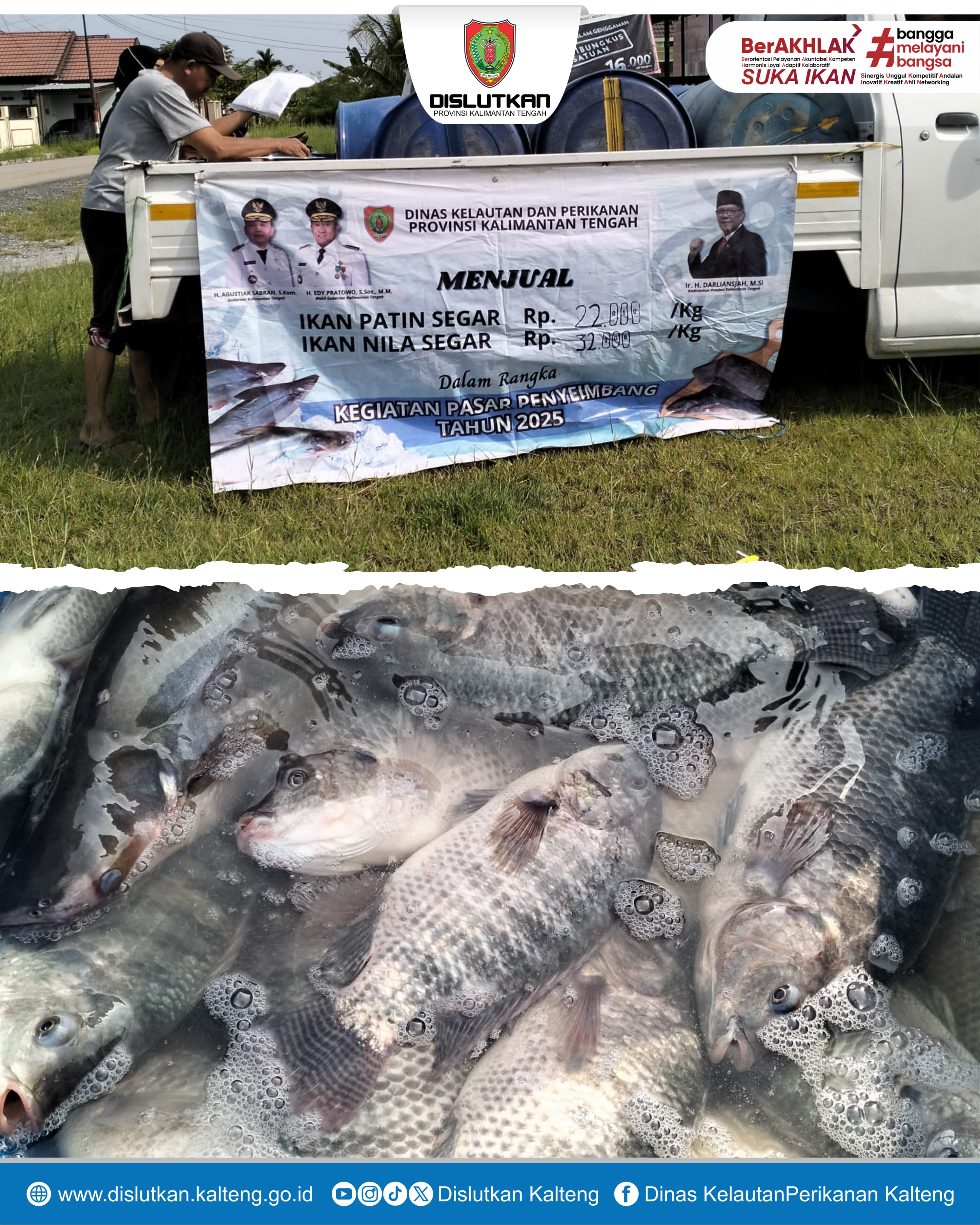 Dislutkan Prov. Kalteng menggelar kegiatan Pasar Penyeimbang Keliling dalam membantu masyarakat menghadapi inflasi dengan komoditas ikan patin dan ikan nila di Jl. Garuda XI, Senin (05/05/2025)