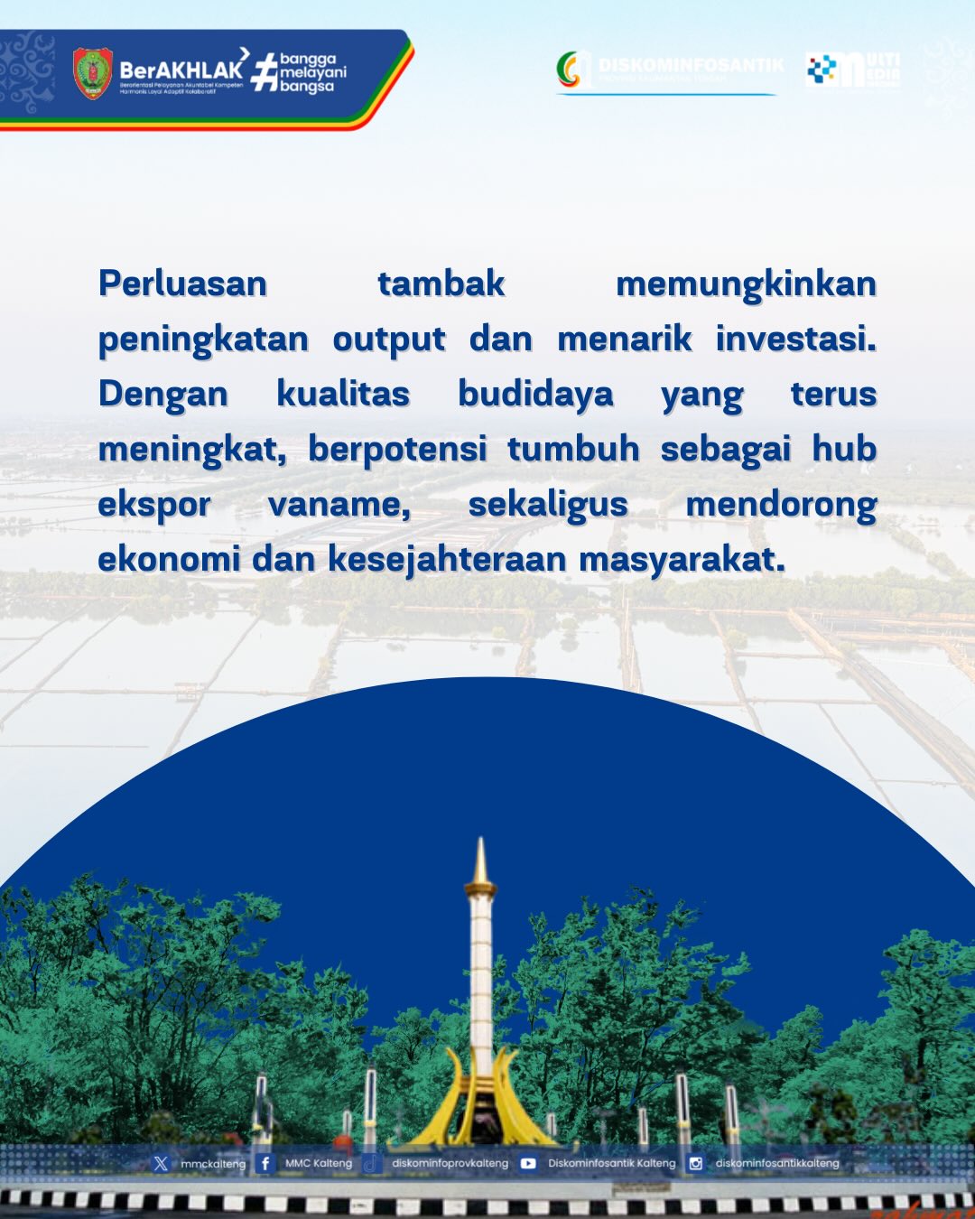 Pemprov Kalteng optimistis perluasan tambak, peningkatan kualitas produksi, dan peluang ekspor akan memperkuat ekonomi pesisir, membuka lapangan kerja baru, serta mendorong kesejahteraan masyarakat dan pertumbuhan daerah.