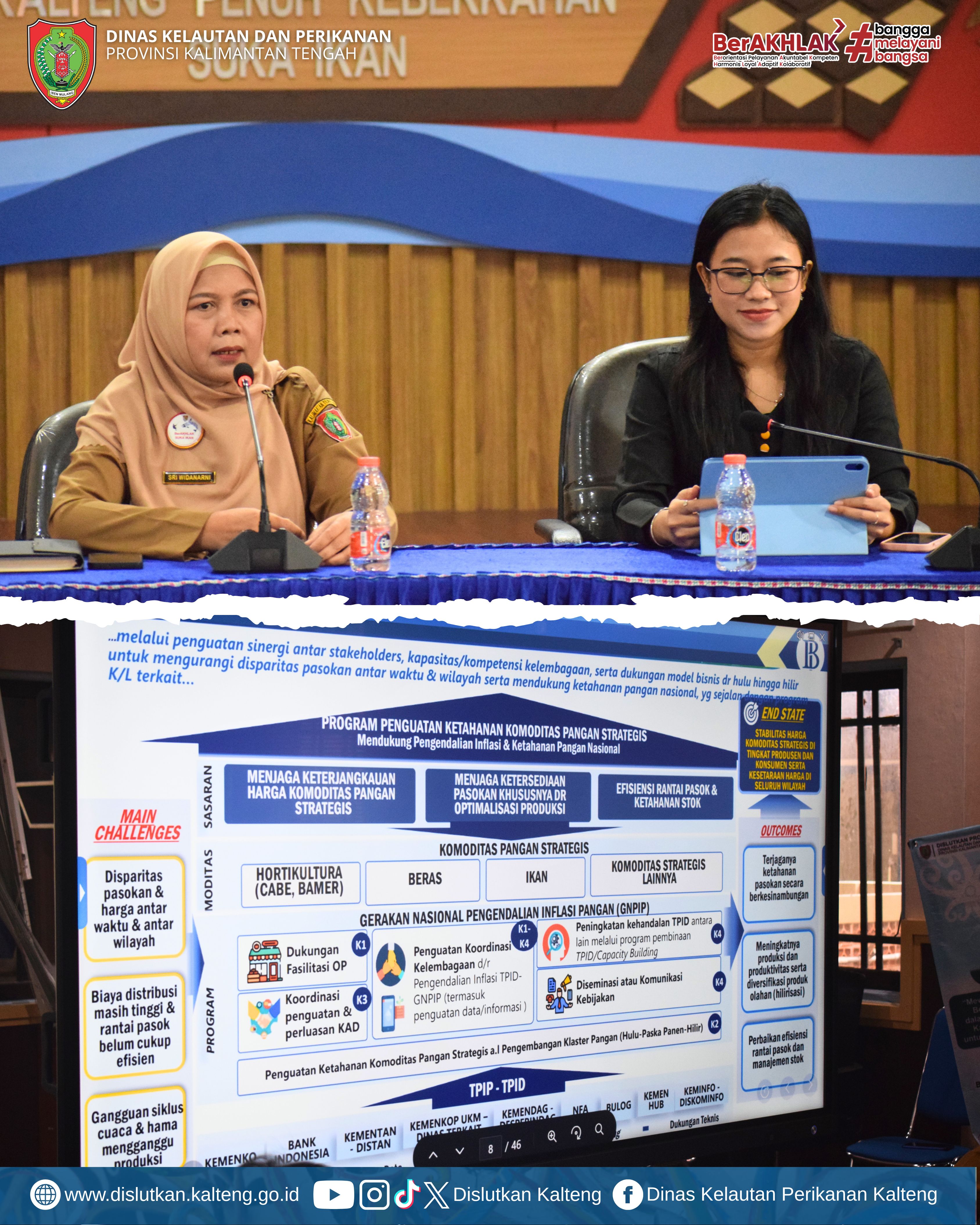 Kepala Dislutkan Prov. Kalteng Sri Widanarni, S.I.P, M.Si Pertemuan bersama Bank Indonesia Dalam Rangka Ekonomi Biru (Blue Economy) bertempat di Aula Dislutkan, Selasa (18/11/2025).