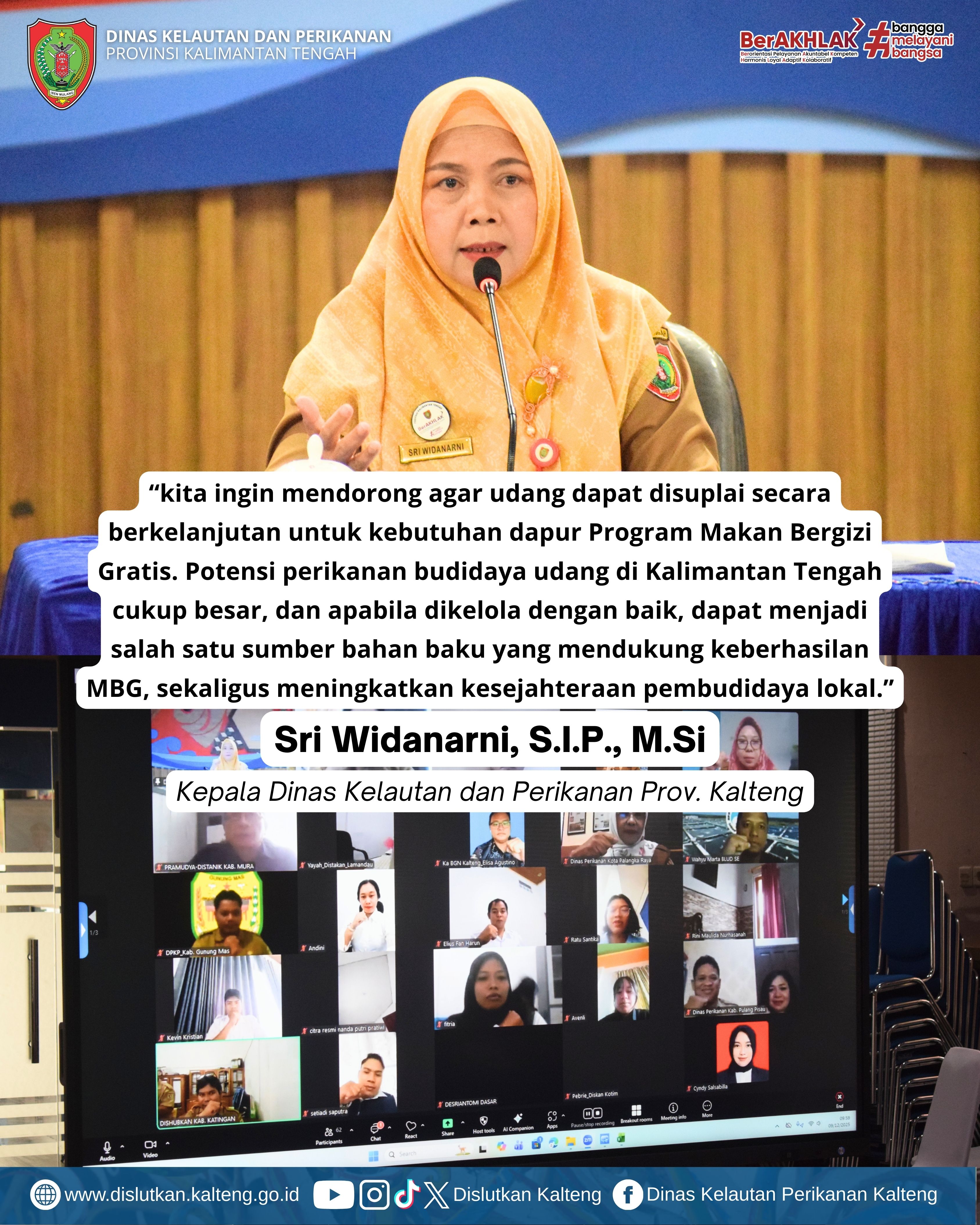 Kepala Dislutkan Prov. Kalteng Sri Widanarni, S.I.P, M.Si Beserta Jajaran Melaksanakan Rapat Koordinasi Mendukung Program Makan Bergizi Gratis (MBG) bertempat di Aula Dislutkan, Selasa (09/12/2025).