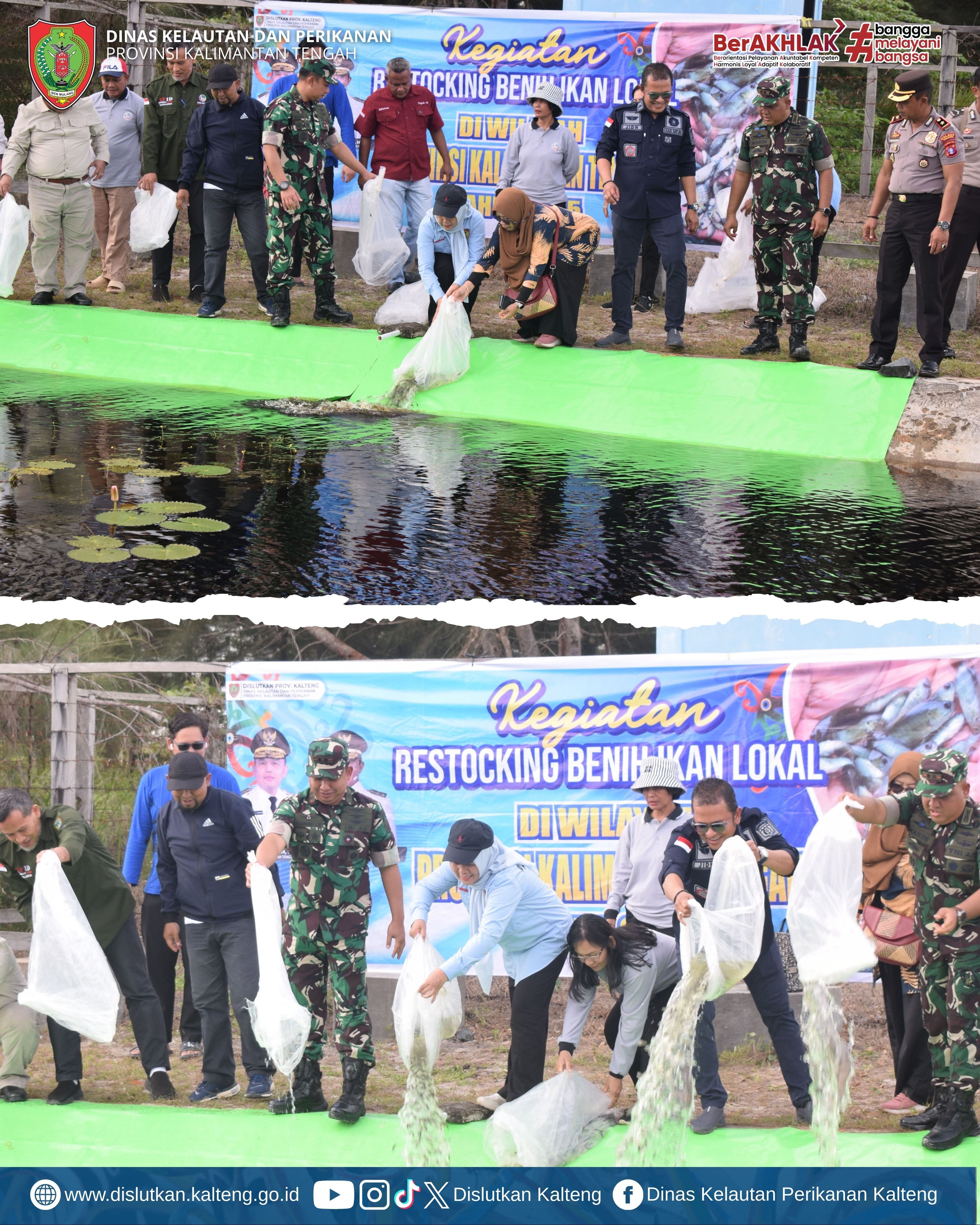 Kepala Dislutkan Prov. Kalteng Sri Widanarni, S.I.P, M.Si Mengikuti Restocking Benih Ikan Lokal (Betok dan Gurame) Bertempat di Embung Tempenek, Minggu (07/12/2025).
