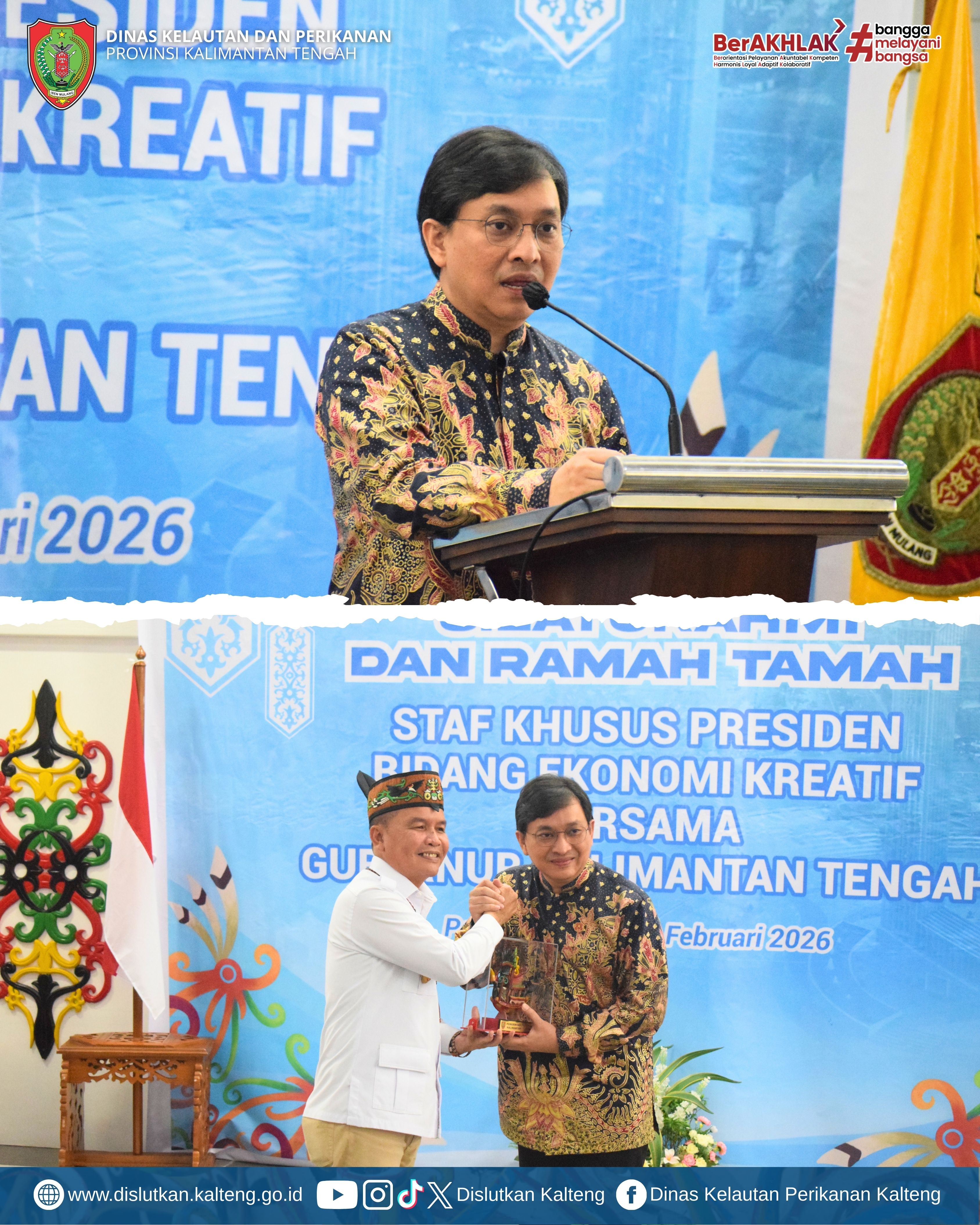 Kepala Dislutkan Prov. Kalteng Sri Widanarni, S.I.P, M.Si Mengikuti Silaturahmi dan Ramah Tamah Staf Khusus Presiden Bidang Ekonomi Kreatif RI bertempat di Istana Isen Mulang, Selasa (10/02/2026).