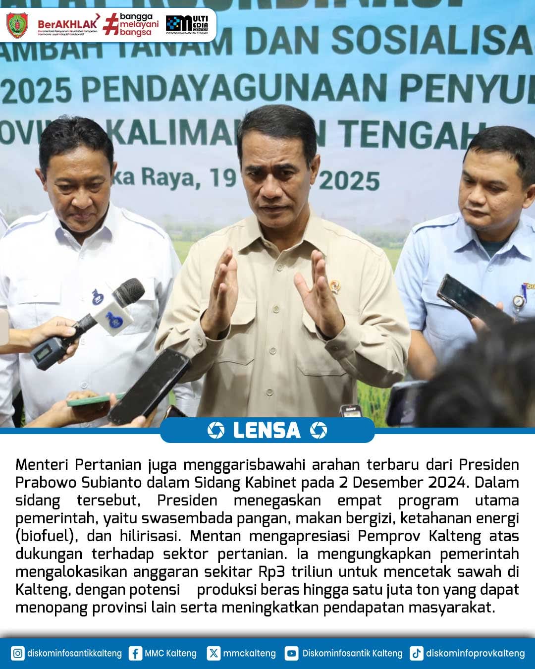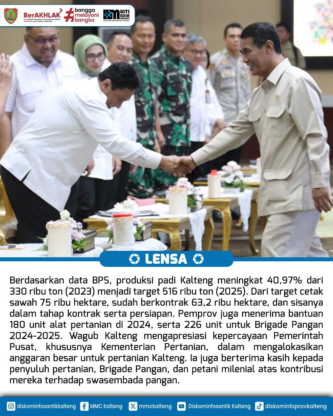 Sinergi Pusat & Daerah, Mentan : Kalteng Punya Potensi Besar di Sektor Pertanian