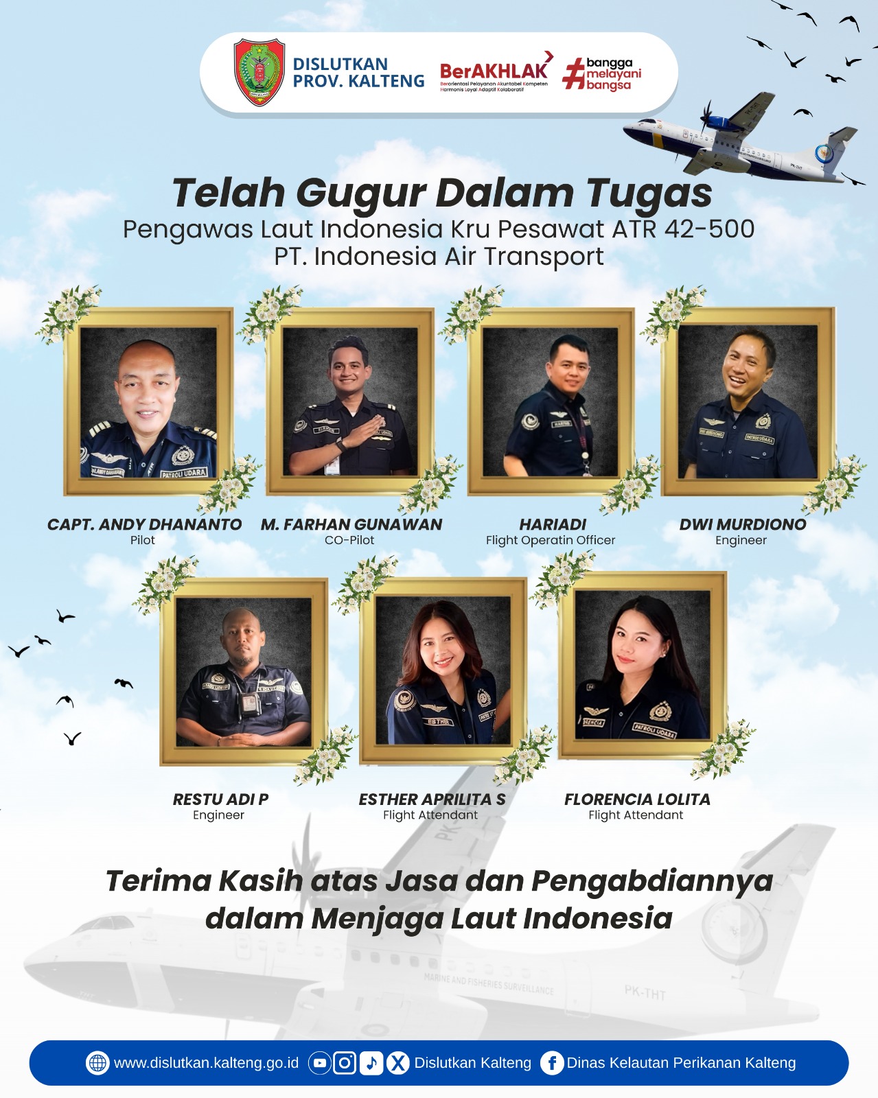 Turut Berduka Cita yang sedalam dalamnya kepada para Korban Pesawat ATR 42-500 PT. Indonesia Air Transport yang telah gugur dalam melaksanakan tugas pelaksanaan Pengawasan Sumberdaya Kelautan dan Perikanan Indonesia. Sebuah pengabdian yang tak sempat usai.