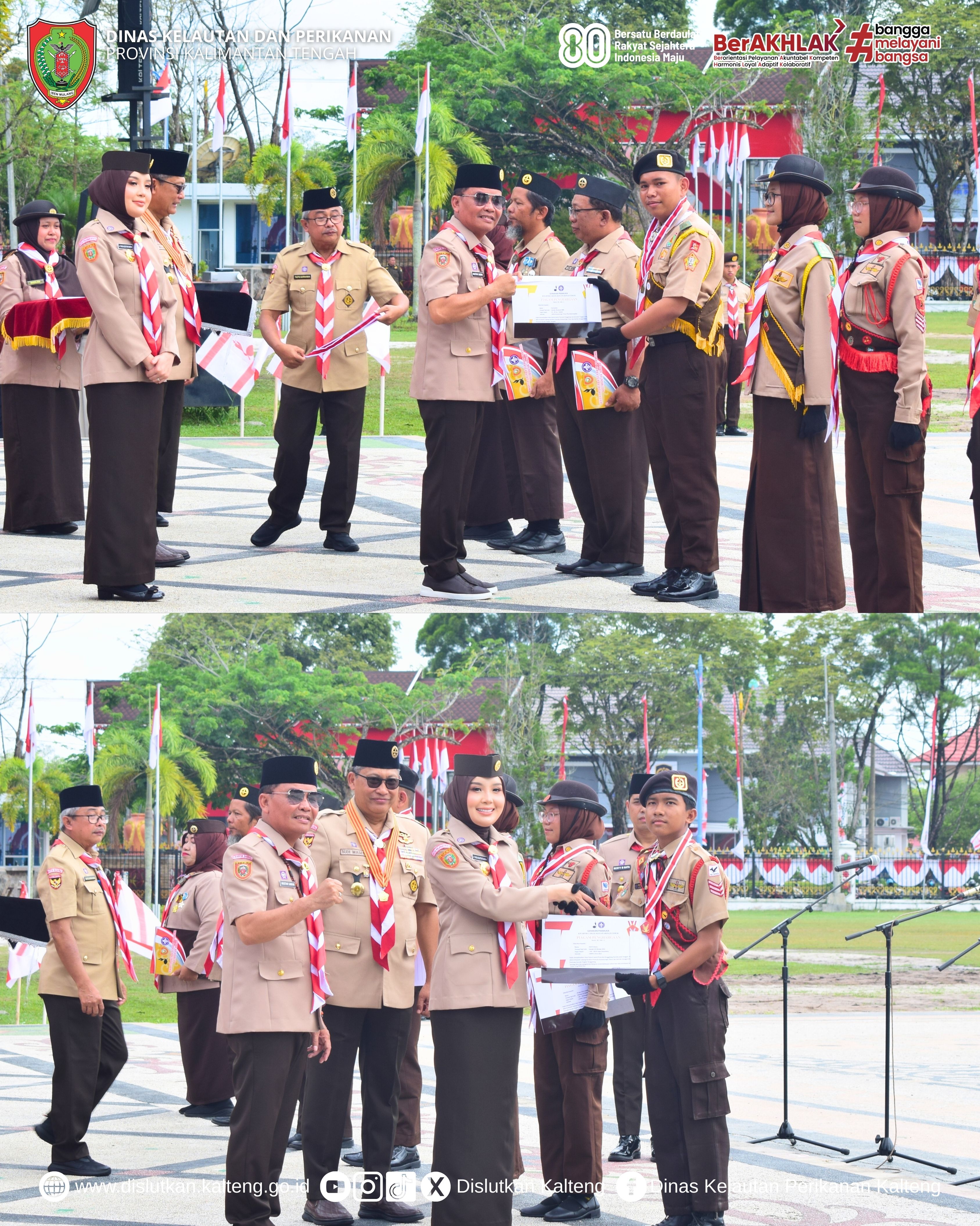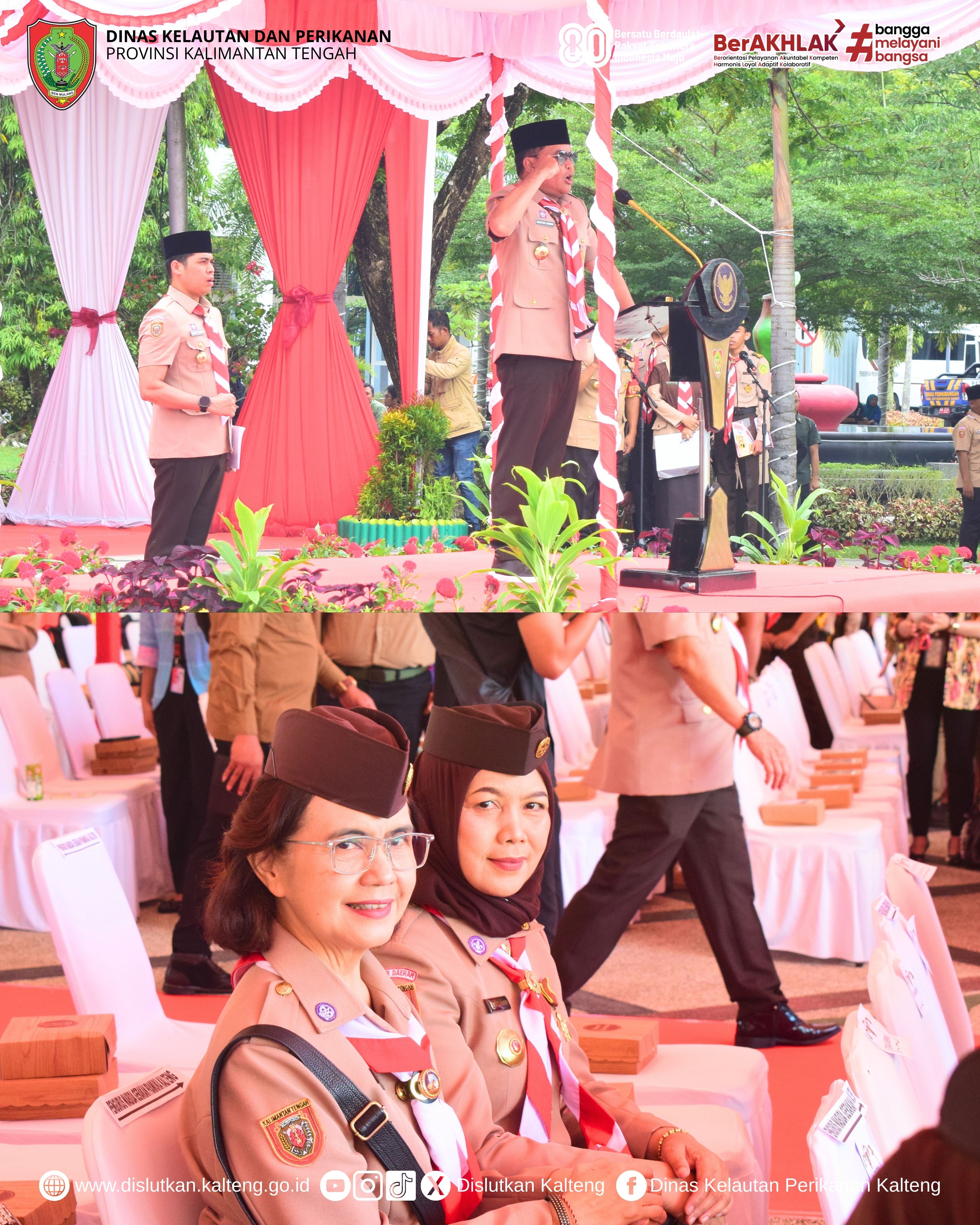 Kepala Dislutkan Prov. Kalteng Sri Widanarni, S.I.P., M.Si Mengikuti Upacara Peringatan Hari Pramuka Ke-64 bertempat di Halaman Kantor Gubernur Kalteng, Kamis (21/08/2025)